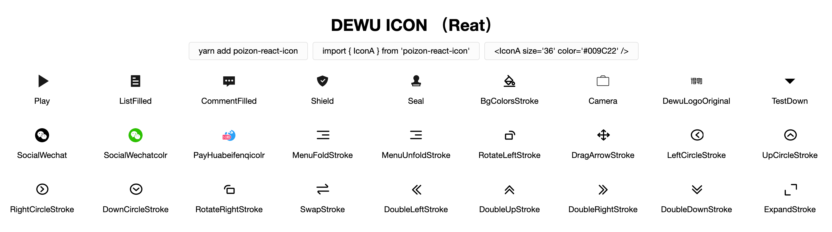 colr例如 social-wechatcolr-origin - 图标命名请使用英文(不可以含 /)和 -,例如 dewu-logo-original